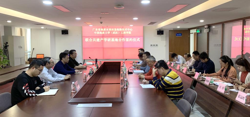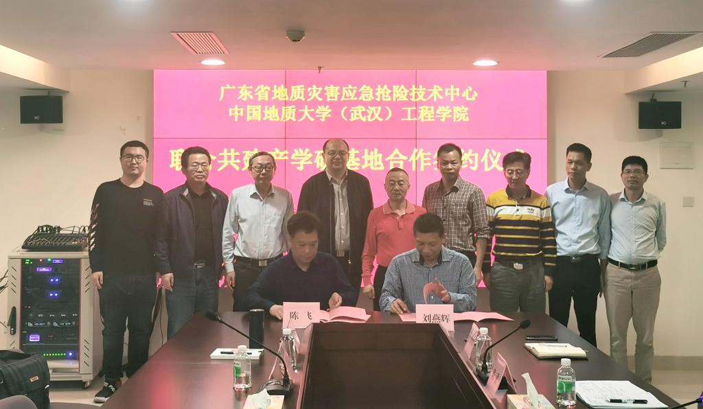 陈飞、刘燕辉签署产学研基地合作协议。根据协议,广东省地质灾害应急抢险技术中心作为中国地质大学(武汉)galaxy银河登录(中国)官方网站的产学研基地,双方将定期就人才的培训、技术的创新、引进与推广、联合攻关、学生实习等方面开展协商研究。
