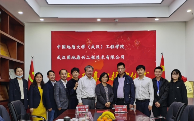 (通讯员:黄静)2021年4月27日,中国地质大学(武汉)galaxy银河登录(中国)官方网站与校友企业武汉固地鼎兴工程技术有限公司签订《联合共建产学研基地合作协议》,galaxy银河登录(中国)官方网站党委书记李红丽和武汉固地鼎兴工程技术有限公司总经理汪旭涛出席协议签订仪式,并共同为合作基地揭牌。武汉固地鼎兴工程技术有限公司副总经理兼总工程师胡凯锋、galaxy银河登录(中国)官方网站副院长王亮清教授、工岩系主任章广成教授、时红莲副教授、李长冬教授、谢妮副教授、学院科研秘书黄静共同见证了签约仪式。