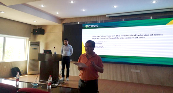 报告结束后,刘方洲博士与在座老师同学进行了交流。张明教授针对“结构性对于黄土湿陷性的影响”,任兴伟副教授针对“静态液化界定”等问题与刘方洲进行了深入探讨。刘方洲博士以浅显易懂的语言与同学们进行互动交流,同学们纷纷表示收获颇多。
